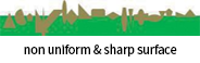 - 비중: 2.7 - 알빠짐 현상 발생 - 실리카 샌드 고정을 위한 도료 사용량 많음 - 오염이 잘되며 청소가 어려움 - 피부 접촉시 심한 찰과상 위험 |